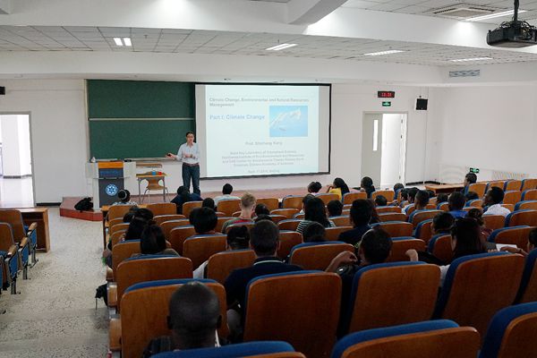 《Overview of Climate Change Science》由國際學院組織開設,是面向國際留學生全英文授課的專業(yè)核心課,由來自西北研究院、中國科學院青藏高原研究所、復旦大學、中山大學的6位專家共同講授。課程主要對氣候變化科學作系統(tǒng)性概要介紹,使研究生認識氣候變化科學的基本理論體系和主要研究內(nèi)容,掌握氣候變化的重要研究方法和手段,了解氣候變化研究的前沿方向和熱點問題。課程具有如下特色:融合課堂講授、專題講座、分組報告和討論答疑等多種教學模式;在系統(tǒng)化理論知識講授基礎上,增加氣候變化前沿、學科發(fā)展歷史和野外科考圖片視頻等多樣教學內(nèi)容;鼓勵留學生關注各自國家和地區(qū)、中國和全球氣候變化研究的進展和應對氣候變化的行動,培養(yǎng)學生共同應對氣候變化挑戰(zhàn)和構建人類命運共同體的理念。該課程自2015年開設以來,已有來自“一帶一路”沿線和歐美等近30個國家500多名留學生選修該課程,受到留學生的歡迎和廣泛好評。