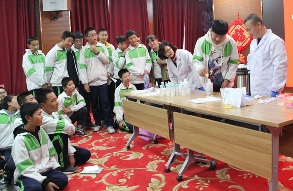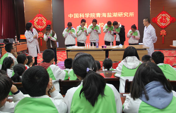 11月4日,在中國科學(xué)院第三屆科學(xué)節(jié)活動(dòng)期間,青海鹽湖所組織博士科普團(tuán)走進(jìn)青海省海東市樂都區(qū)七里店中學(xué)開展科普進(jìn)校園活動(dòng),近150名中學(xué)生參加了活動(dòng)。本屆科學(xué)節(jié)以“嗨,科學(xué)!”為主題,將在中國科學(xué)院全國各院屬單位開展形式多樣、內(nèi)容豐富的科普活動(dòng)。