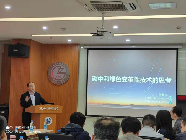 4月25日,中國科學(xué)院院士、中科院過程工程研究所張鎖江研究員應(yīng)邀訪問中國科學(xué)院蘭州化學(xué)物理研究所蘇州研究院,并作了題為“碳中和綠色變革性技術(shù)的思考”的學(xué)術(shù)報(bào)告。