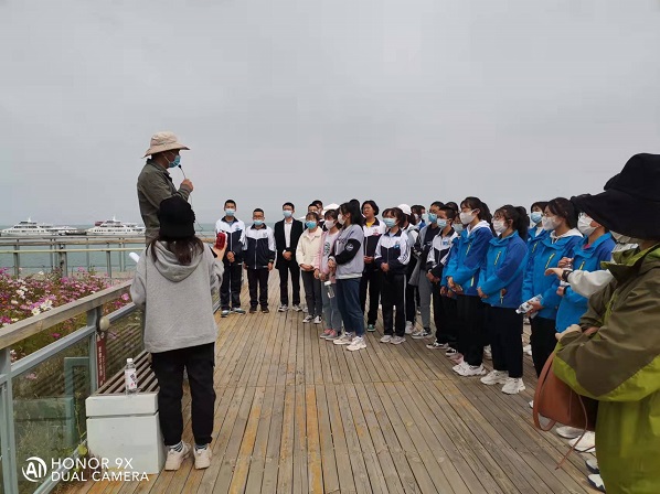 在為期兩天的行程中,同學(xué)們先后參觀了青海湖和海北原子城紀念館,在老師的指導(dǎo)下學(xué)習(xí)如何樹立自信心,增強合作意識,了解與青藏高原相關(guān)的地質(zhì)地理知識,感受兩彈一星老科學(xué)家們無私奉獻和創(chuàng)新報國的精神等。此外,大家還分組團隊合作自己設(shè)計團隊游戲,展示個人才藝,氣氛融洽而熱烈。尤其是在展示個人才藝環(huán)節(jié)還發(fā)生了一個有趣而暖心的小插曲,同學(xué)們的歌舞表演不僅吸引了周圍游客的關(guān)注,也引起了一位從四川九寨溝遠道而來的藏族歌手的注意,這位歌手被同學(xué)們的表演所感染,用他特有的嗓音欣然為同學(xué)們演唱了他自己原創(chuàng)的歌曲,并鼓勵同學(xué)們努力學(xué)習(xí),成為對國家對社會有用的人才。