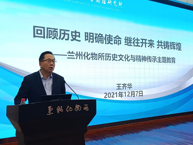 王齊華表示,蘭州化物所建所60余年以來(lái),經(jīng)過(guò)幾代科研工作者的艱苦努力、開(kāi)拓創(chuàng)新,為國(guó)家經(jīng)濟(jì)建設(shè)、科技事業(yè)發(fā)展做出了重大貢獻(xiàn)。黨的十八大以來(lái),黨中央高度重視科技創(chuàng)新,把科技創(chuàng)新放在國(guó)家發(fā)展全局的核心位置。青年科研人員和管理與支撐部門(mén)人員要牢記新時(shí)期責(zé)任與使命,深入了解研究所光輝歷程,繼承和發(fā)揚(yáng)老一輩科學(xué)家胸懷祖國(guó)、服務(wù)人民的優(yōu)秀品質(zhì),弘揚(yáng)新時(shí)代科學(xué)家精神,深刻領(lǐng)會(huì)“國(guó)家事”“國(guó)家責(zé)”的內(nèi)涵和要求,牢記“國(guó)家隊(duì)”“國(guó)家人”的使命擔(dān)當(dāng),立足崗位實(shí)際,為研究所科技創(chuàng)新和改革發(fā)展做出應(yīng)有的貢獻(xiàn),為實(shí)現(xiàn)習(xí)近平總書(shū)記對(duì)中科院提出的“四個(gè)率先”和“兩加快一努力”要求和建設(shè)世界科技強(qiáng)國(guó)貢獻(xiàn)智慧和力量。