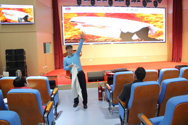 王尚華從構筑社會消防安全“防火墻”工程提出的消防“三懂三提示四個能力”建設入手開展了消防安全講授?!叭奔炊馂念A防知識,懂單位防火的措施,懂撲救火災的方法。“三提示”,既提示公眾所在場所火災危險性,提示公眾所在場所安全逃生路線、安全出口的具體位置、遇到火災等緊急情況如何正確逃生、自救,提示公眾所在場所內滅火器、逃生設備器材具體放置位置和使用方法?!八膫€能力”,即檢查和整改火災隱患能力,撲救初期火災能力,組織引導人員疏散逃生能力,消防安全知識宣傳教育培訓能力。王尚華用幽默風趣的語言,結合大量的現(xiàn)實案例,給大家上了一堂生動活潑的安全教育課,深受參會職工和學生的歡迎。