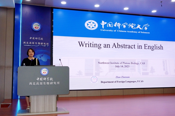 7月14日,中國(guó)科學(xué)院西北高原生物研究所學(xué)術(shù)英語(yǔ)寫(xiě)作培訓(xùn)在1號(hào)樓學(xué)術(shù)報(bào)告廳舉行,此次培訓(xùn)特別邀請(qǐng)了中國(guó)科學(xué)院大學(xué)外語(yǔ)系于華教授、孟艷麗副教授和趙竹軒講師進(jìn)行授課,一百七十余名在職職工和研究生參加了此次培訓(xùn),培訓(xùn)活動(dòng)由西北高原所副所長(zhǎng)楊其恩主持。
