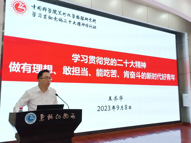 蘭州化物所黨委書記王齊華作了題為“學(xué)習(xí)貫徹黨的二十大精神 做有理想敢擔(dān)當(dāng)能吃苦肯奮斗的新時(shí)代好青年”的專題黨課,并對(duì)全體研究生同學(xué)提出希望和要求。希望同學(xué)們以習(xí)近平新時(shí)代中國特色社會(huì)主義思想為指導(dǎo),認(rèn)真學(xué)習(xí)領(lǐng)會(huì)黨的二十大精神、習(xí)近平總書記關(guān)于科技創(chuàng)新的重要論述和指示批示精神。面向世界科技前沿、面向國家重大需求、面向國民經(jīng)濟(jì)主戰(zhàn)場(chǎng)、面向人民生命健康,刻苦鉆研,勇于創(chuàng)新,大力傳承弘揚(yáng)科學(xué)家精神,培養(yǎng)高尚的品格、積淀豐厚的學(xué)養(yǎng)、保持良好的心理狀態(tài),努力成長為對(duì)國家、對(duì)民族有用的創(chuàng)新人才,把個(gè)人的理想追求融入黨和國家事業(yè)之中,為早日實(shí)現(xiàn)高水平科技自立自強(qiáng)貢獻(xiàn)青春力量和智慧。