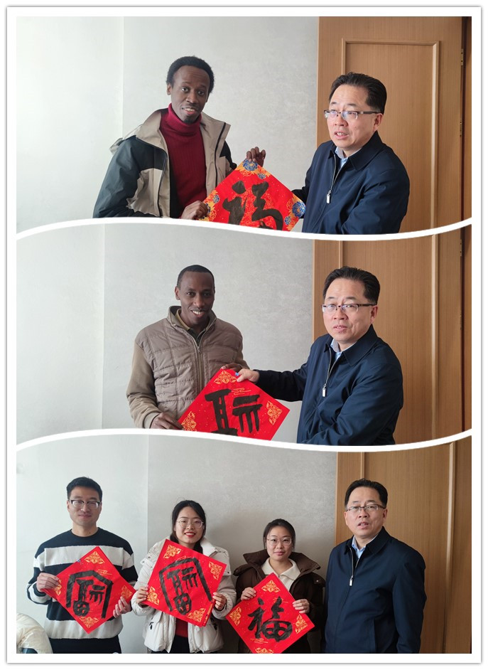 蘭州化物所黨委書記王齊華、副所長石峰了解了外籍導(dǎo)師在研究所的工作生活情況,聽取了對(duì)研究生教育工作的意見建議,詢問了同學(xué)們的留所原因和假期安排,叮囑同學(xué)們注意實(shí)驗(yàn)室安全、宿舍用電安全和交通安全等,合理安排假期生活,并向大家送上新春祝福和春節(jié)禮包,祝福大家在研究所度過一個(gè)平安、快樂、祥和的春節(jié)。