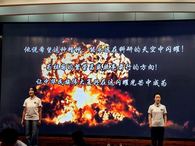 宣講會(huì)邀請(qǐng)了中國科學(xué)院大學(xué)“兩彈一星”精神宣講團(tuán)作了“青年挺膺擔(dān)?厚植家國情懷”的專題宣講,以“講述信仰故事、演繹時(shí)代精神、傳承文化使命”為主線,通過宣講、演繹、短劇等不同形式表演了《啟航》《執(zhí)著》《家書》《追夢(mèng)者?逐夢(mèng)者》《做祖國的 “鏈條”》等節(jié)目,講述5位元?jiǎng)资钢緢?bào)國的動(dòng)人故事,帶領(lǐng)現(xiàn)場師生沉浸式聆聽了老一輩科學(xué)家的動(dòng)人故事,回望了那段艱苦卓絕卻又激情燃燒的歲月,體味了老一輩科學(xué)家熱愛祖國、無私奉獻(xiàn)的家國情懷。