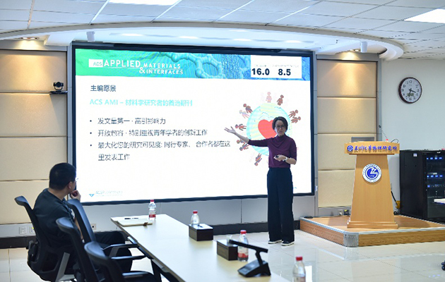 11月14日下午,ACS Applied Materials & Interfaces(ACS AMI)期刊主編、新加坡南洋理工大學(xué)林歆怡教授,ACS AMI期刊運(yùn)營(yíng)編輯張格博士應(yīng)邀訪問(wèn)中國(guó)科學(xué)院蘭州化學(xué)物理研究所,并分別作了題為“ACS AMI家族期刊簡(jiǎn)介與投稿注意事項(xiàng)”“ Make Your Next Paper Stand Out”專題報(bào)告。蘭州潤(rùn)滑材料與技術(shù)創(chuàng)新中心相關(guān)科研人員參加活動(dòng)。