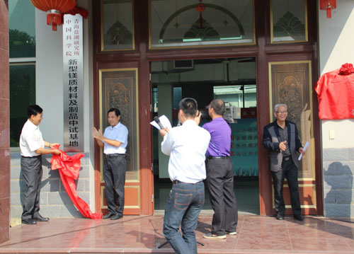 張金初、段東平、支洋波和肖學(xué)英代表雙方進行了“新型鎂質(zhì)膠凝材料工程技術(shù)聯(lián)合研究中心”和“新型鎂質(zhì)材料及制品中試基地”的揭牌。揭牌儀式結(jié)束后,來賓參觀了板材生產(chǎn)線和新型海工鎂水泥試驗場地。