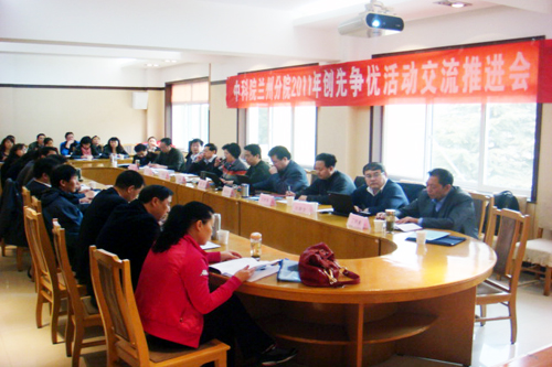 蘭州分院黨組成員、副院長、創(chuàng)先爭優(yōu)活動領(lǐng)導(dǎo)小組副組長兼辦公室主任楊青春傳達(dá)了蘭州分院2011年創(chuàng)先爭優(yōu)活動工作要點(diǎn)。